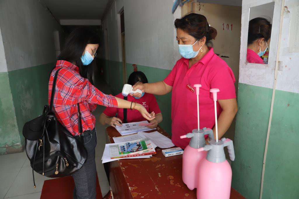 进入宿舍前再次进行信息核验和消杀 |