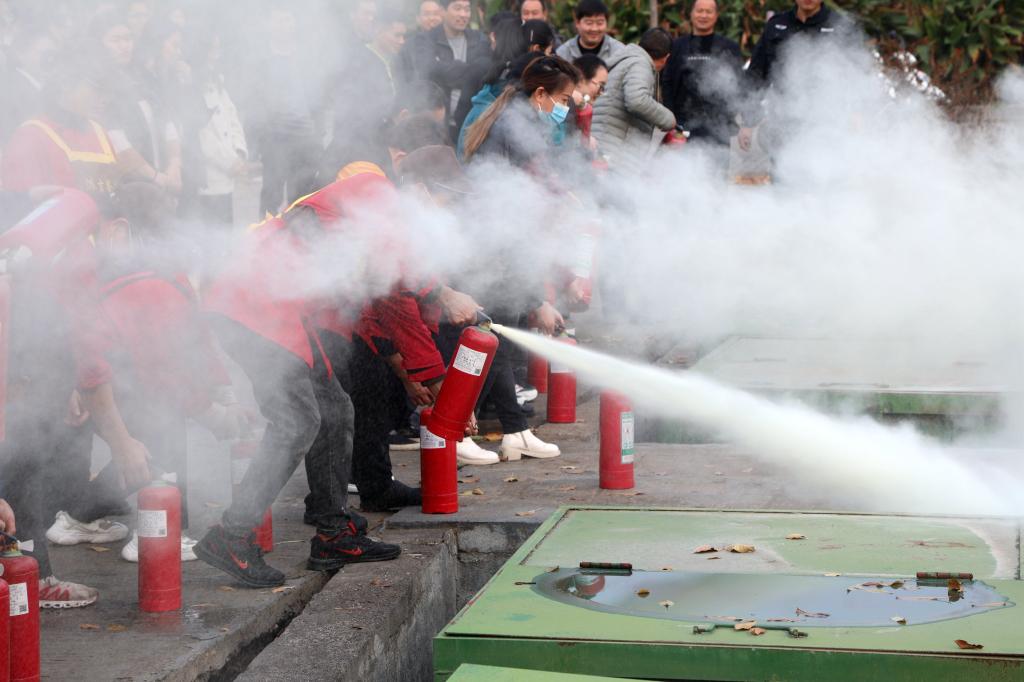 消防安全员从火灾的起因、常见火灾类型、灭火的基本方法、灭火器的分类、干粉灭火器的使用方法、干粉灭火器的适用火灾类型、使用注意事项等几个方面对消防常识和消防器材的使用进行了详细的讲解,并现场演示干粉灭火器的使用方法。“拔、瞄、压、扫”的使用口诀简单好记,参加培训人员通过亲手实践均能很好掌握使用方法。