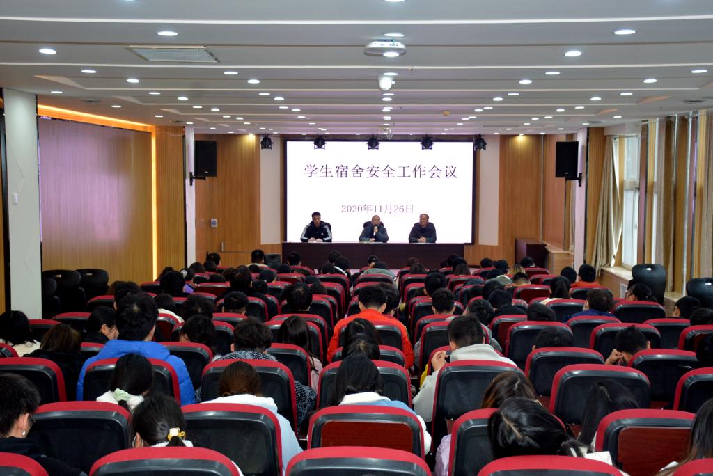 为进一步加强学生宿舍安全管理,认真落实消防安全工作责任,筑牢安全防范意识,11月26日,高职学院在综合楼四楼报告厅召开学生宿舍安全工作会议。学院党委副书记孙敬坤、学生科全体人员、各系党支部副书记及全体辅导员出席,各班班长和宿舍长共600余人分三个批次参加。