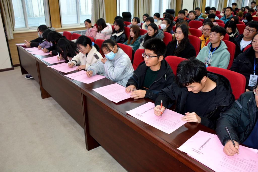 会上,班长代表、宿舍长代表现场签订学生宿舍安全管理责任书。