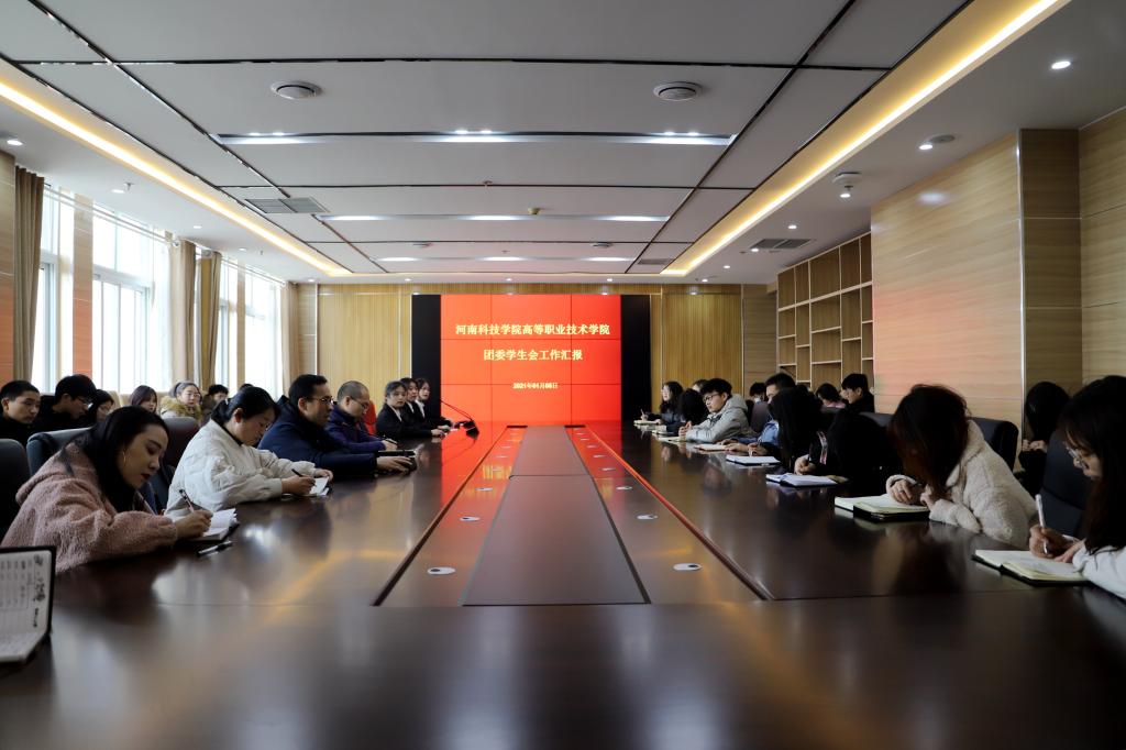 1月5日上午,高职学院在综合楼十楼会议室召开团委学生会2020年度工作汇报会。学院党委书记王吉田、党委副书记孙敬坤、团委相关教师及学生会全体成员等50余人参加。