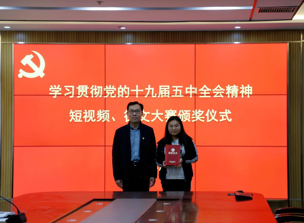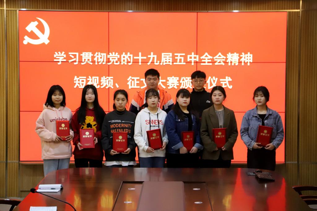 颁奖仪式上,大家共同观看了《“十四五”,奋斗有我!——<我心中的“十四五”>》短视频大赛一、二等奖获奖作品。孙敬坤宣读了获奖学生名单,学院领导、相关职能科室负责人和辅导员为获奖学生颁发了荣誉证书。