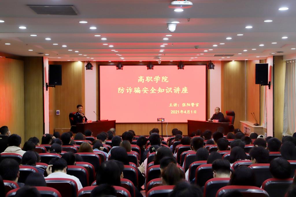 4月1日下午,高职学院在综合楼四楼报告厅举办防诈骗安全知识讲座,邀请新乡市公安局电信网络反诈侦查支队反诈中心警官张阳为大家讲授防诈骗安全知识。学生科、保卫科、各系辅导员、各系学生干部代表、宿舍长代表、学生代表共160余人聆听了讲座。讲座由学院党委副书记孙敬坤主持。