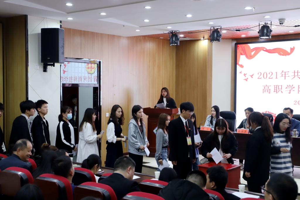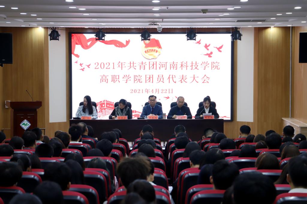 4月22日晚上,共青团河南科技学院高等职业技术学院团员代表大会在综合楼四楼报告厅召开。高职学院党委书记王吉田、副书记孙敬坤,团委书记李孝彦、副书记路紫薇,党建办公室、学生科负责人以及各系党支部副书记、辅导员和150名团员代表参加了会议。