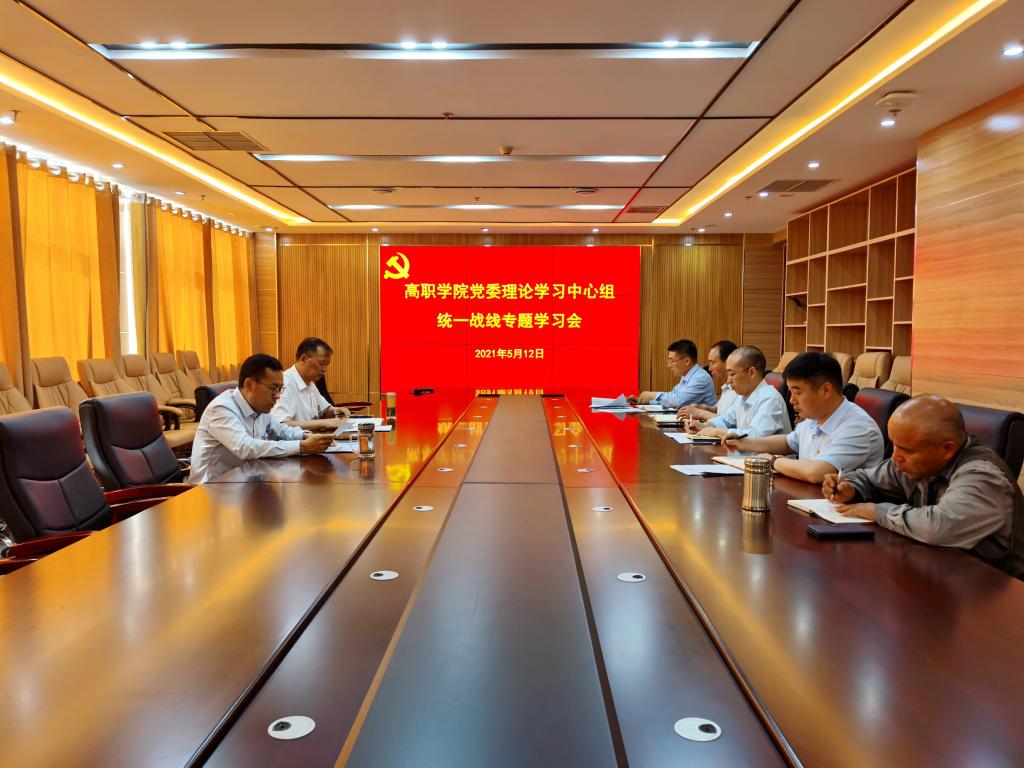 5月12日下午,高职学院党委理论学习中心组在综合楼十楼会议室举行统一战线专题集中学习会,学院全体领导班子成员参加学习。学习会由党委书记王吉田主持。