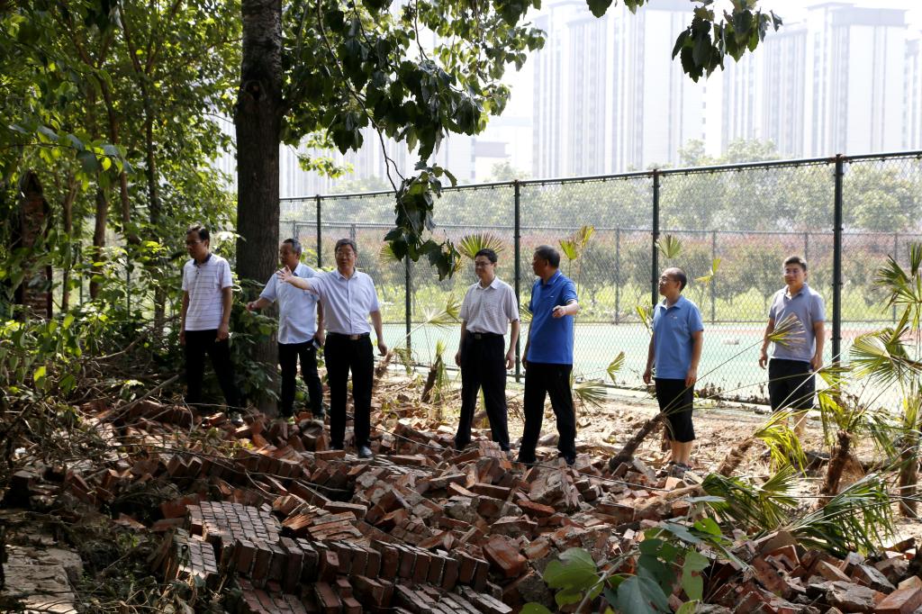 会后,贾积身在高职学院领导班子成员陪同下,围绕校园周边认真查看了被洪水冲塌的多处围墙,走进实验室仔细了解了仪器设备受洪水浸泡情况。在学生宿舍楼前,贾积身向正在晾晒学生被褥、衣物的教职工和物业保洁人员表达了亲切慰问。