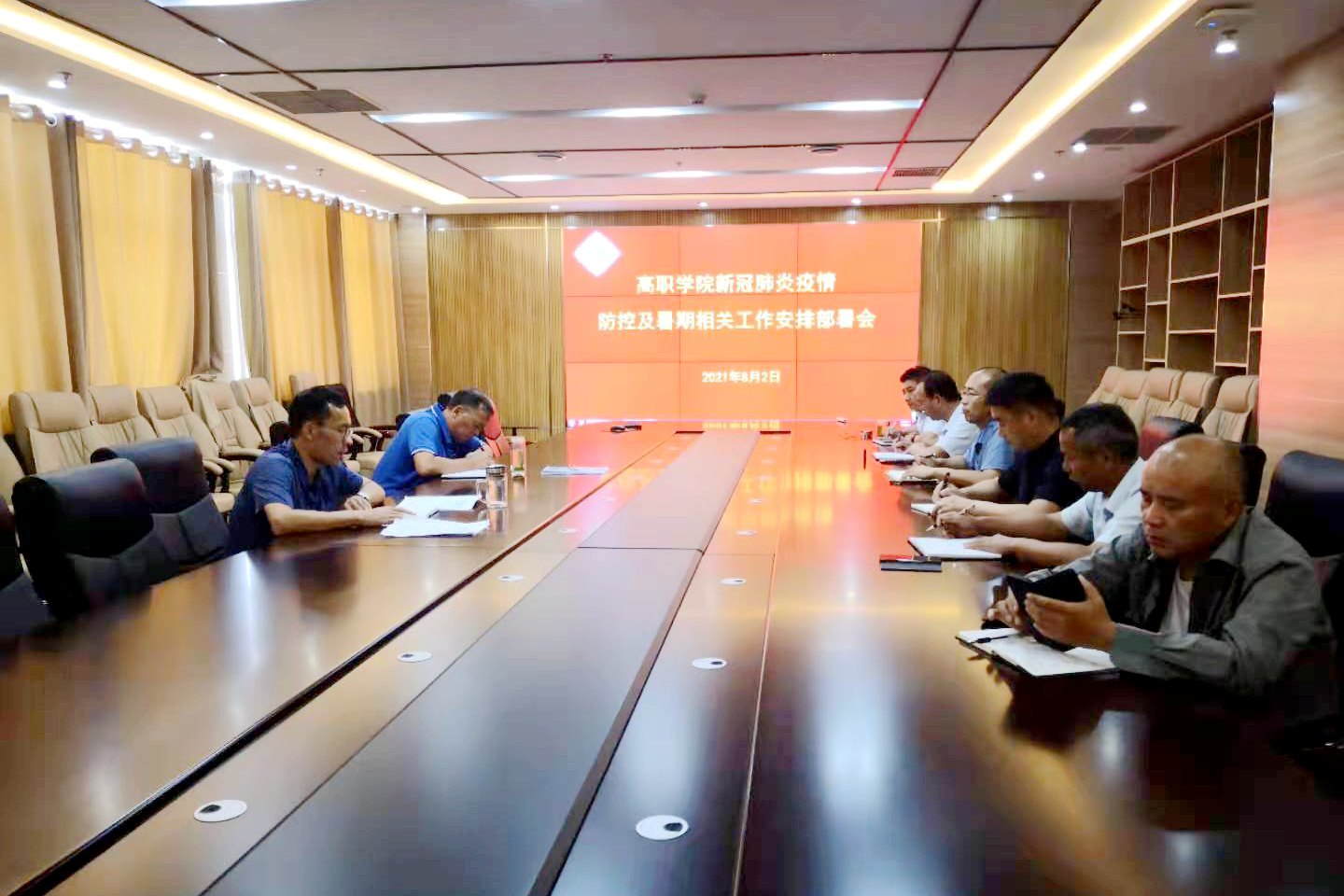 为认真做好疫情防控及洪涝灾后恢复建设工作,8月2日上午,高职学院在综合楼十楼会议室召开新冠肺炎疫情防控及暑期相关工作安排部署会。全体领导班子成员参加会议。会议由党委书记王吉田主持。