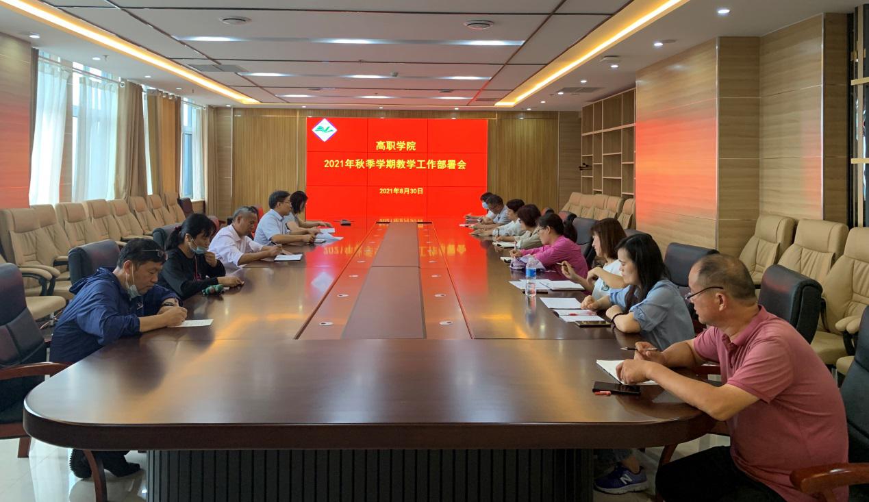 8月30日上午,高职学院在综合楼十楼会议室召开秋季学期教学工作会议,对疫情防控期间做好教学工作进行专题部署。副院长李勇超、王铁固,各系(部)及相关科室负责人参加了会议。会议由教务科负责人主持。