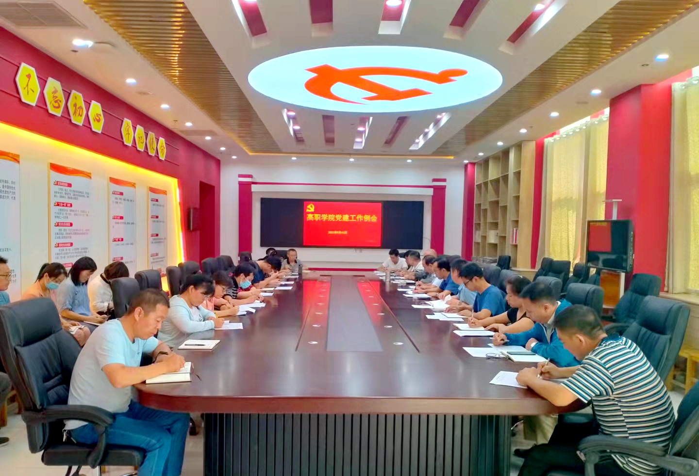 9月10日下午,高职学院在综合楼8楼党建活动室召开党建工作会议,统筹安排2021年下半年党建工作。学院领导王吉田、申长奎、宋合成、丁福虎等出席会议。各支部书记、副书记、组织委员及党建组织员等近30人参加会议。