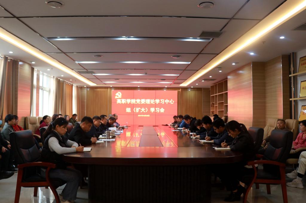 10月28日下午,高等职业技术学院党委理论学习中心组在综合楼十楼会议室举行年度第九次集中学习会。学院领导班子成员、各党支部委员、党建组织员等近40余人参加了集中学习。学习会由党委书记王吉田主持。