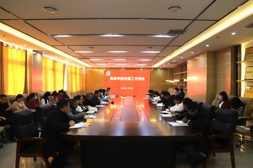 11月12日下午,高等职业技术学院在综合楼十楼会议室召开党建工作例会,安排部署近期基层党建工作。学院党委委员、各支部全体委员、党建组织员等30余人参加会议。会议由党委书记王吉田主持。