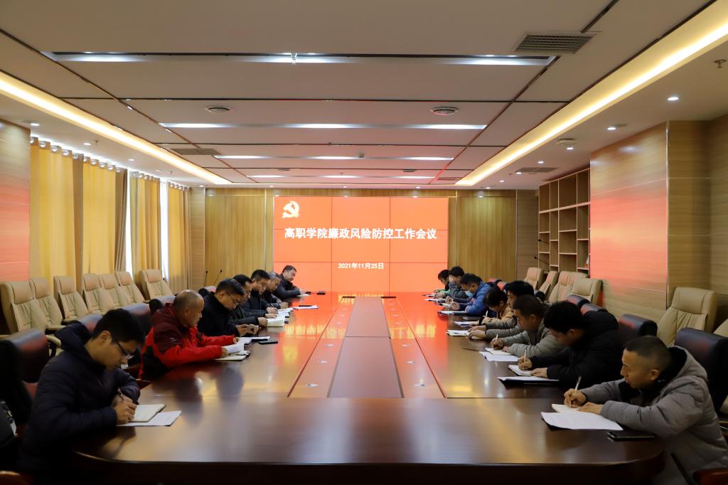 11月25日上午,高等职业技术学院在综合楼十楼会议室召开会议,研究部署廉政风险防控工作。学院党政领导班子成员和各支部书记参加会议。会议由学院党委书记王吉田主持。