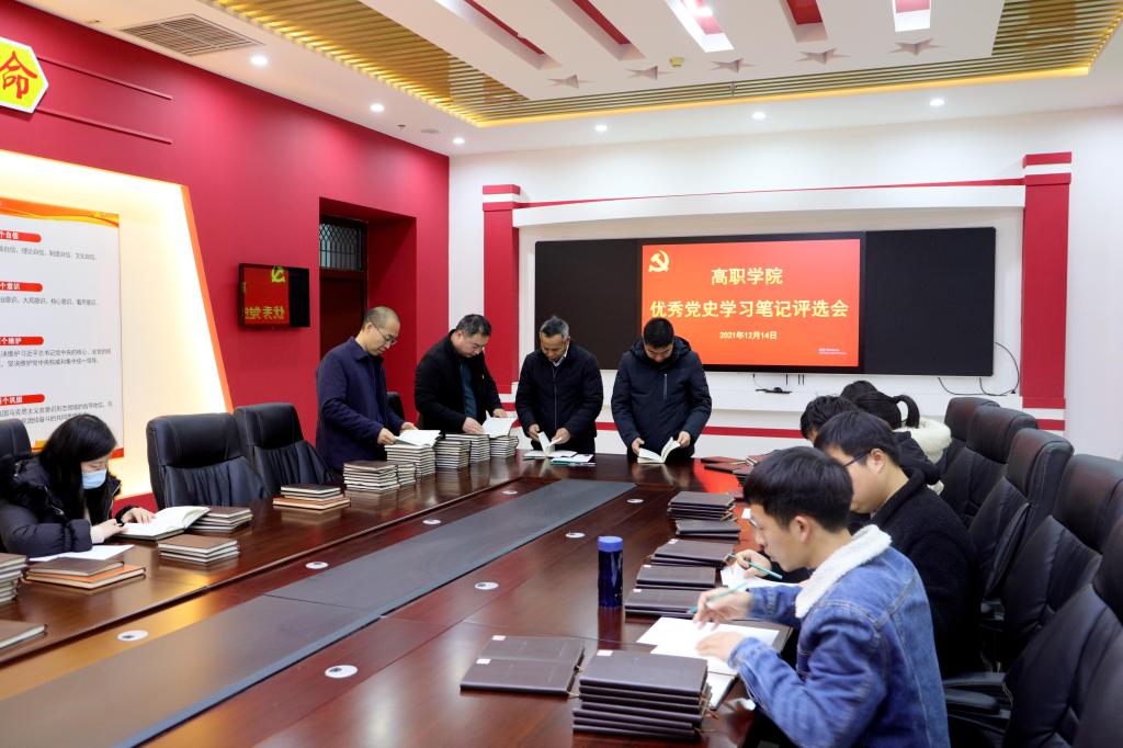 按照党史学习教育工作计划安排,12月14日上午,高等职业技术学院在综合楼八楼党建活动室举行党史学习教育读书笔记评比活动。