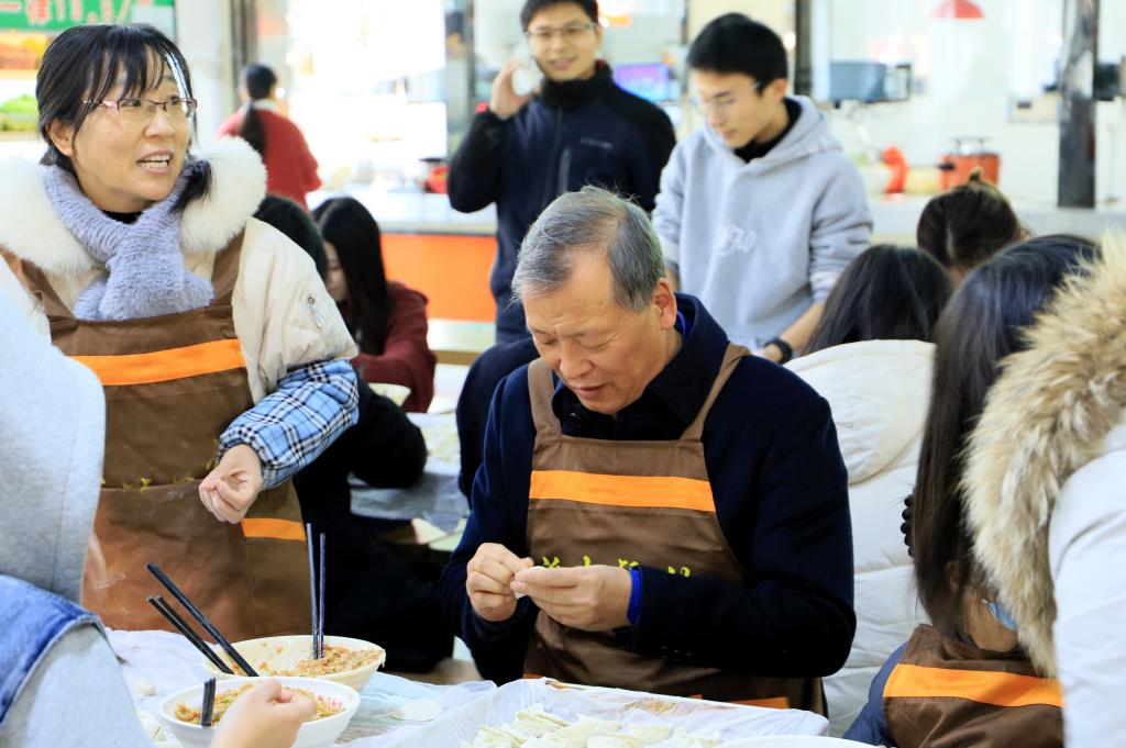 12月18日,临近冬至,高职学院组织学生代表,在餐厅举行冬至包饺子活动,希望能够让同学们感受到学院的温暖关怀,缓解思乡之情,加深了解我国的传统饮食文化。学院领导乐玉忠、孙敬坤、申长奎等与各系副书记、辅导员、教师代表一同参加。学生科负责人与餐厅工作人员提前筹备,合理规划,准备好场地、座位、面皮、馅料、工具等必备物资。