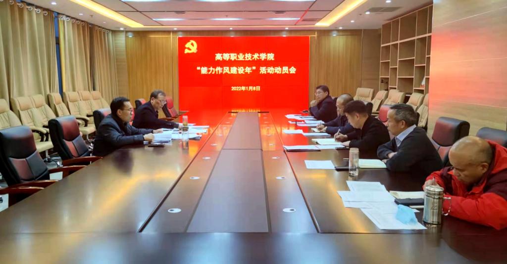 1月8日下午,高等职业技术学院在综合楼十楼会议室召开“能力作风建设年”活动动员会。学院全体领导班子成员参加会议。会议由学院党委书记王吉田主持。