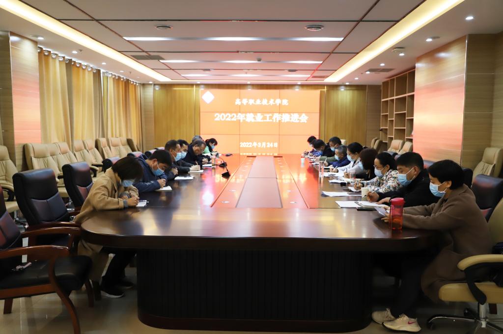 3月24日下午,高等职业技术学院在综合楼第一会议室召开2022年毕业生就业工作推进会,院党委书记王吉田、院长乐玉忠、副院长王铁固和各系书记、主任及招生就业科全体人员参加了会议。会议由王铁固主持。