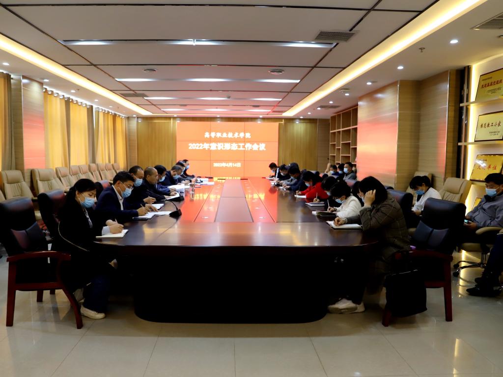 4月14日下午,高等职业技术学院在综合楼第一会议室召开2022年意识形态工作会议。学院领导班子成员及各党支部书记、副书记、各相关部门负责人等20余人参加会议。会议由学院党委副书记申长奎主持。