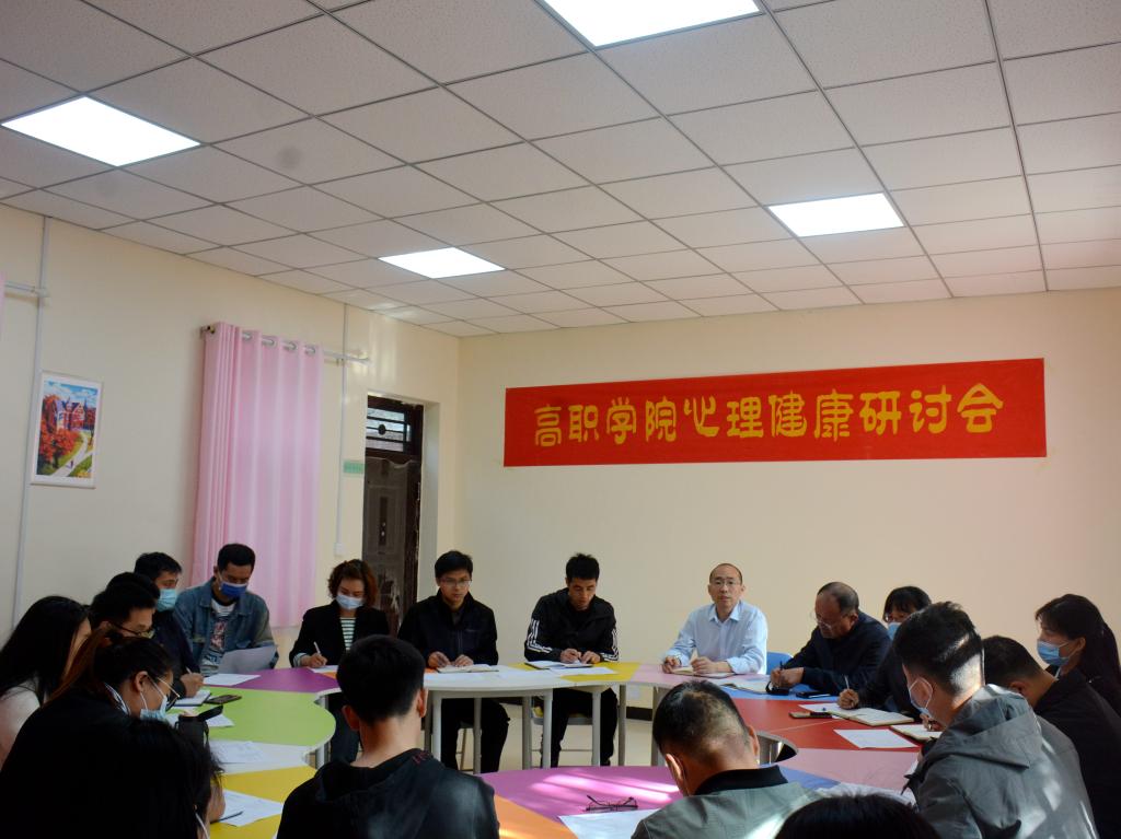 4月18日上午,高等职业技术学院在大学生心理健康教育中心举办心理健康研讨会,学院党委副书记孙敬坤出席会议,各系党支部副书记、全体辅导员、学生科及团委全体工作人员参会。