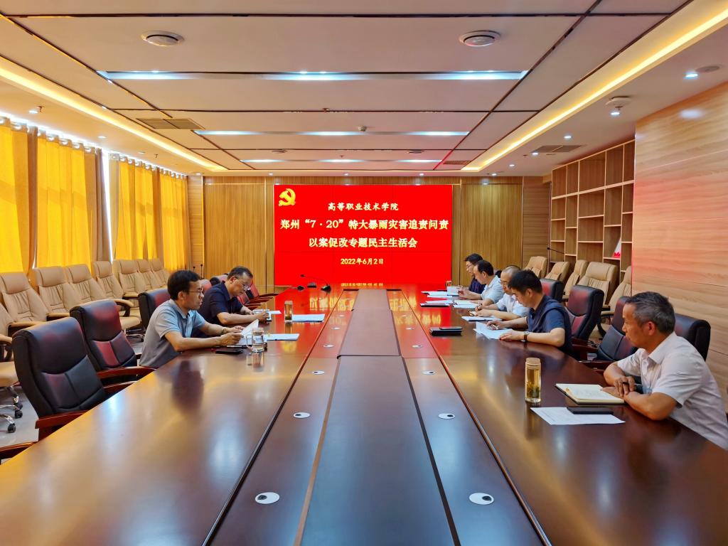 6月2日下午,高等职业技术学院在综合楼第一会议室召开郑州“7·20”特大暴雨灾害追责问责案件以案促改专题民主生活会。学院领导班子成员参加会议,会议由学院党委书记王吉田主持。
