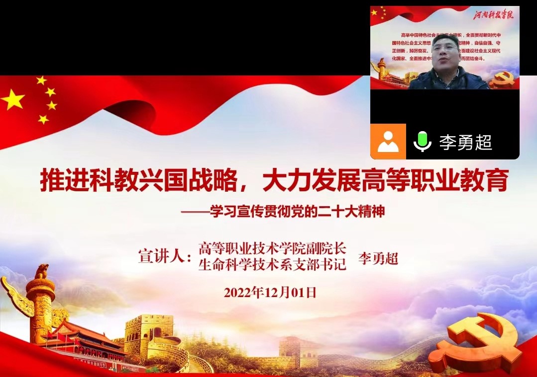 为深入学习贯彻党的二十大精神,自11月底以来,高等职业技术学院认真组织全体领导班子成员、各党支部书记和副书记等10余人,先后以多种形式面向师生员工广泛开展党的二十大精神宣讲活动。