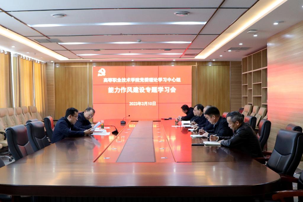 3月10日上午,高等职业技术学院党委理论学习中心组在综合楼第一会议室围绕能力作风建设专题开展集中学习。会议由学院党委书记王吉田主持。