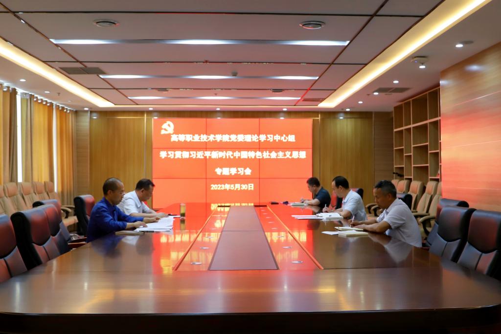 5月30日,高等职业技术学院在综合楼十楼第一会议室召开了党委理论学习中心组学习贯彻习近平新时代中国特色社会主义思想主题教育专题学习会,学院全体班子成员参加了会议。会议由院党委书记孙敬坤主持。