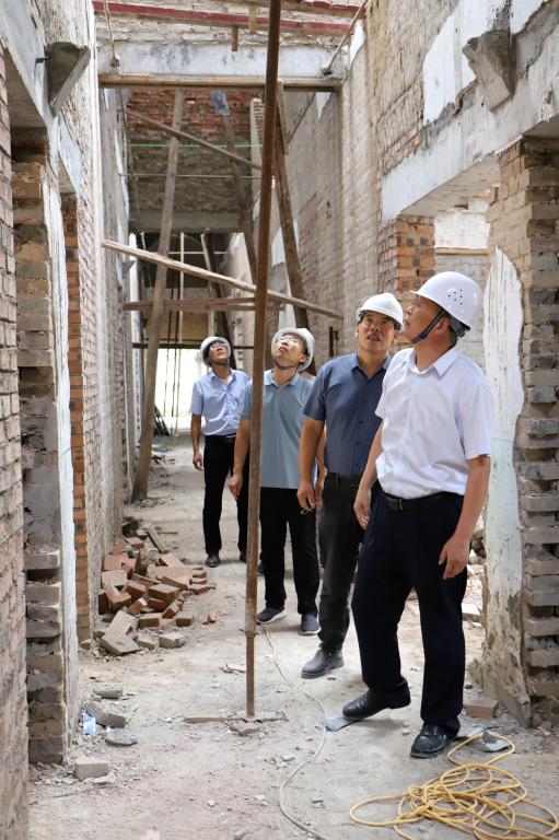 7月28日上午,高等职业技术学院党委书记孙敬坤、院长乐玉忠等领导班子成员到大红房加固维修改造项目施工现场进行督导检查。