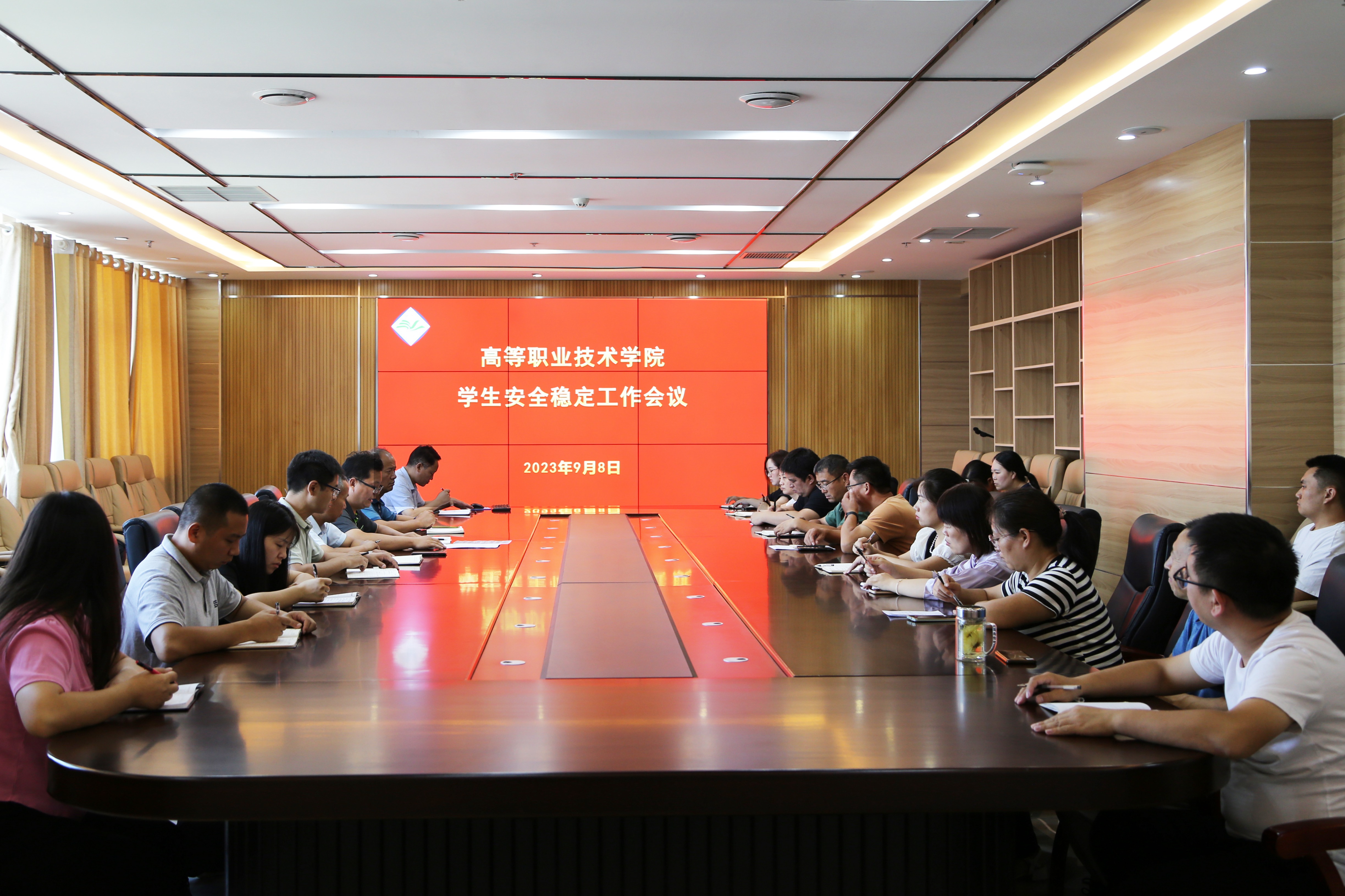 9月8日,高等职业技术学院在综合楼十楼第一会议室召开学生安全稳定工作会议,学院党委副书记张高峰、副院长王铁固,学生科、团委负责人,各系支部书记、系主任、辅导员等二十余人参加了会议。会议由王铁固主持。