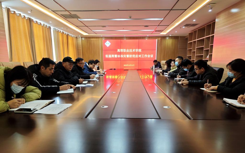 12月11日上午,高等职业技术学院在综合楼十楼第一会议室召开低温雨雪冰冻灾害防范应对工作会议。学院党委副书记张高峰,学生科、团委负责人,各系支部书记、辅导员等二十余人参加了会议。会议由学生科负责人主持。