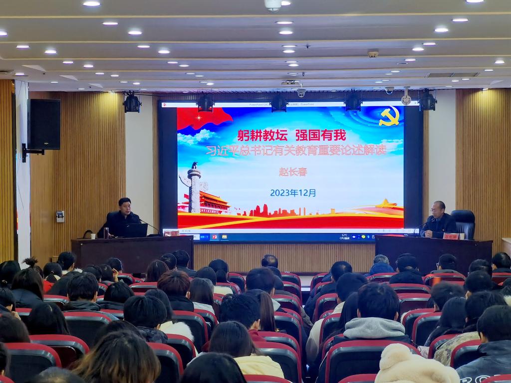 12月20日上午,高等职业技术学院邀请校党委办公室主任、党的二十大精神宣讲团专家赵长春同志为党员集中培训班作专题讲座。讲座在综合楼四楼报告厅举行,学院党政领导班子及全体师生党员参加了此次讲座。