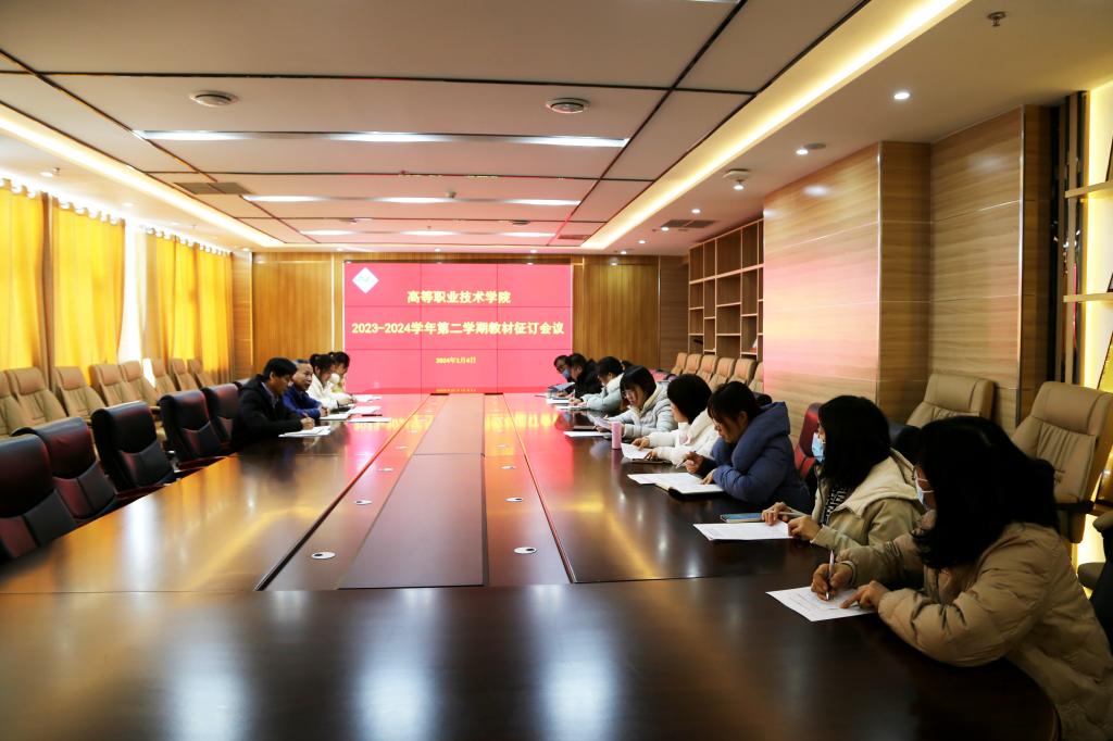 1月4日,根据学校《教材建设与管理实施细则(试行)》对教材征订工作的相关要求,高等职业技术学院在综合楼十楼第一会议室组织学院教材建设分委员会召开2023—2024学年第二学期教材征订工作会议,学院党委副书记杨大光、教务科负责人、分委会委员等出席会议。副院长王铁固主持会议。