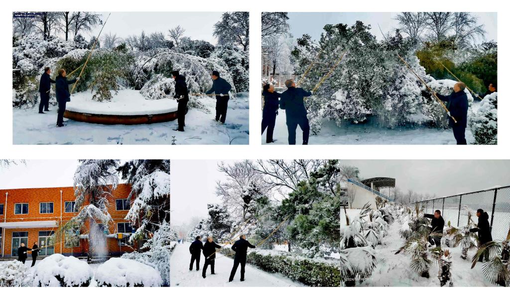 在活动现场,大家挥舞着竹竿、铁锹和扫帚对各种被积雪“压弯了腰”竹子树木上的积雪及校园主要交通通道上的积雪进行清扫。大家齐心协力,配合默契,有的打、有的铲、有的推、有的扫,干得热火朝天,忙碌的身影在皑皑白雪中构成了一道靓丽的风景线。