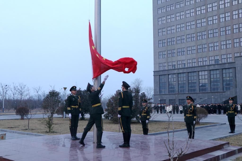 2月26日早上,高等职业技术学院新学期主题升国旗仪式在综合楼广场举行。学院党委书记孙敬坤、副书记张高峰、副院长王铁固出席升国旗仪式,学生科、团委相关老师、各系师生代表共300余人参加。升旗仪式由王铁固主持。