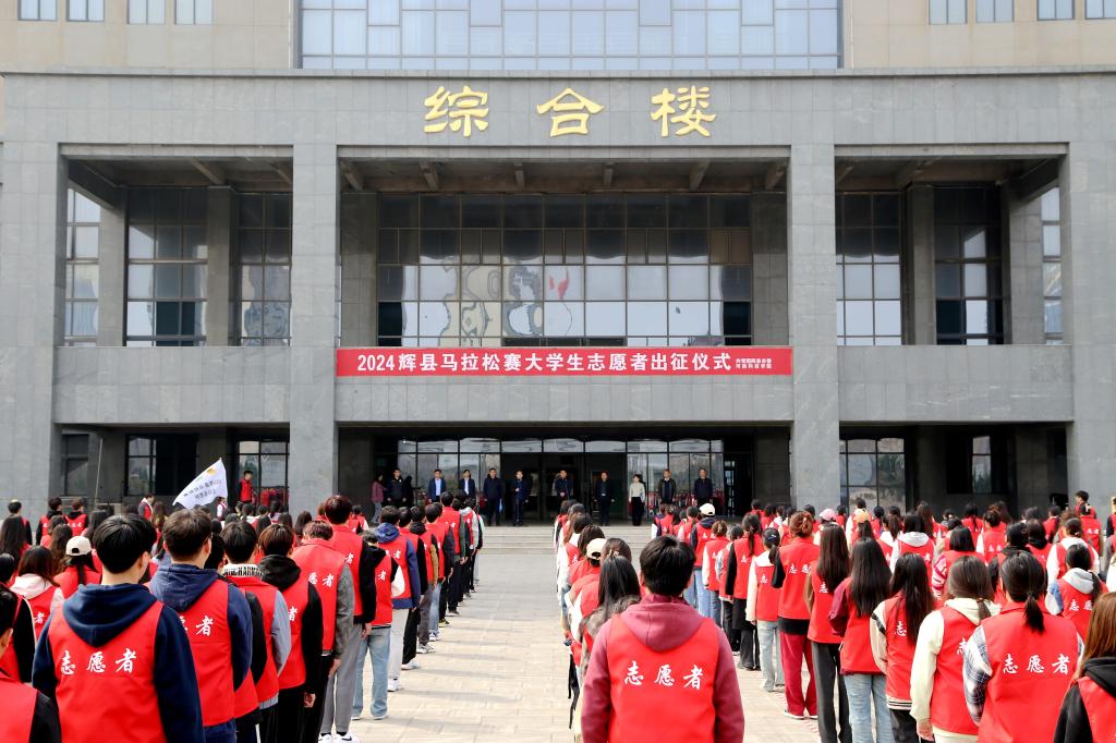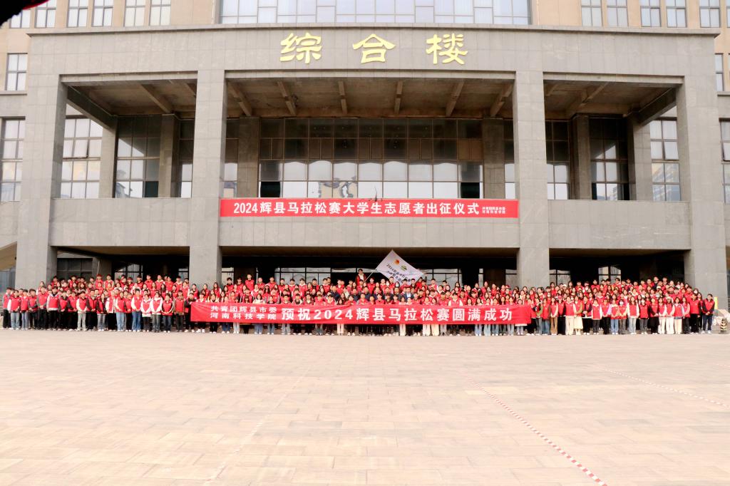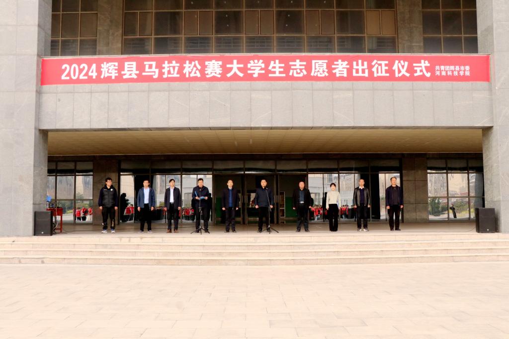 3月22日下午,2024辉县马拉松赛志愿者出征仪式在河南科技学院百泉校区综合楼前广场举行,辉县市副市长程龙、学院党委书记孙敬坤出席活动,辉县市团市委、教育体育局、学院相关领导、各系书记辅导员及大学生志愿者五百余人参加活动。