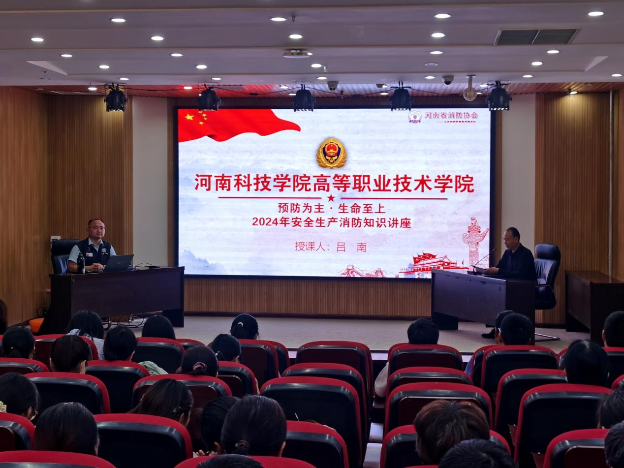 为提高师生的消防安全意识,增强应急处置能力,4月25日,高等职业技术学院特邀河南省消防协会在综合楼4楼报告厅作“预防为主 生命至上”2024年安全生产消防知识讲座。全体教师和学生代表、后勤餐饮、保洁物业参加。
