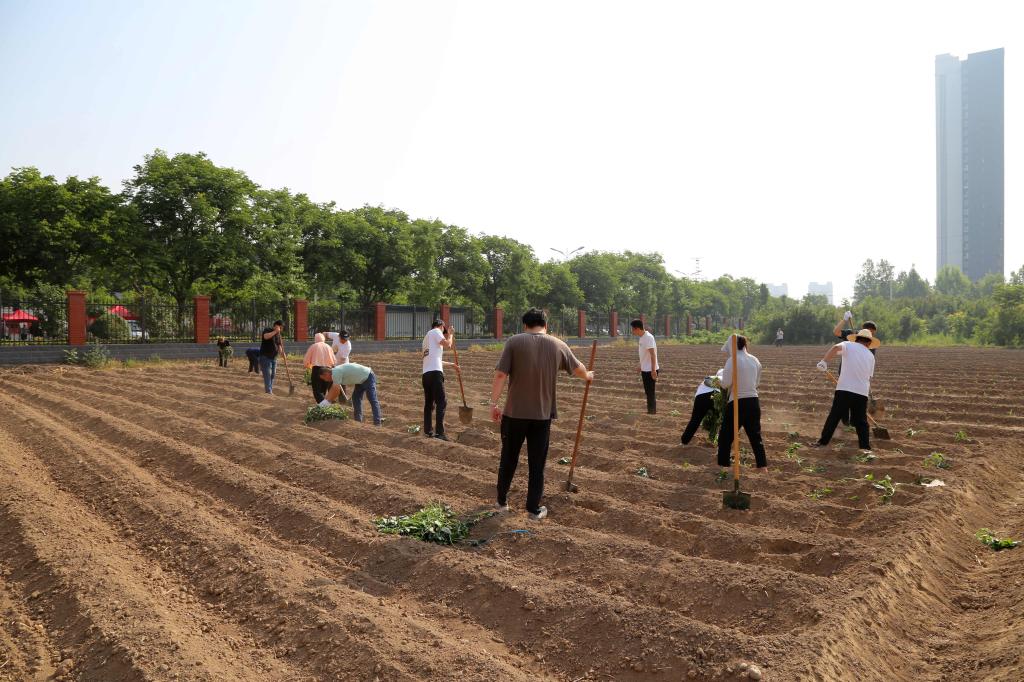 为丰富党内组织生活形式,进一步增强党组织的凝聚力、战斗力,把党员教育融入日常、抓在经常,5月23日上午,高等职业技术学院组织教职工开展“体验躬耕实践,传承百农精神”主题党日(扩大)活动,在校内空地种植红薯。