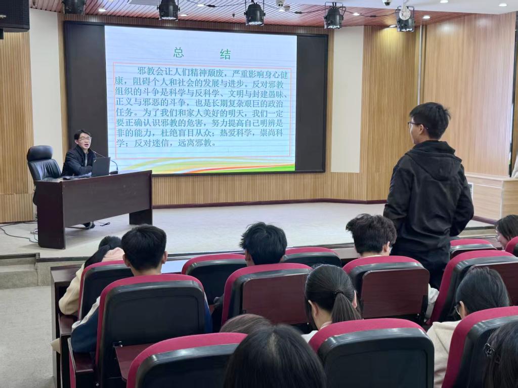 为加强师生科学素养教育,筑牢反邪教思想防线,3月27日下午,高等职业技术学院特邀新乡市科学技术协会科普中心副主任赵津,在综合楼四楼报告厅举办“用科学理性之光 驱散邪教阴霾”专题报告会。学院全体学工干部及100余名师生代表共同参与活动。