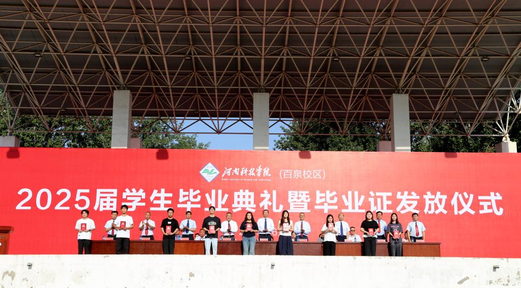 6月6日上午,百泉校区在东操场举行2025届学生毕业典礼暨毕业证发放仪式。副校长乐玉忠出席毕业典礼。校教务处处长杨宾峰、学生处处长冀红举,以及高等职业技术学院党政班子成员、各职能科室和系(部)负责人、2025届毕业生等参加了毕业典礼。毕业典礼由学院党委书记孙敬坤主持。