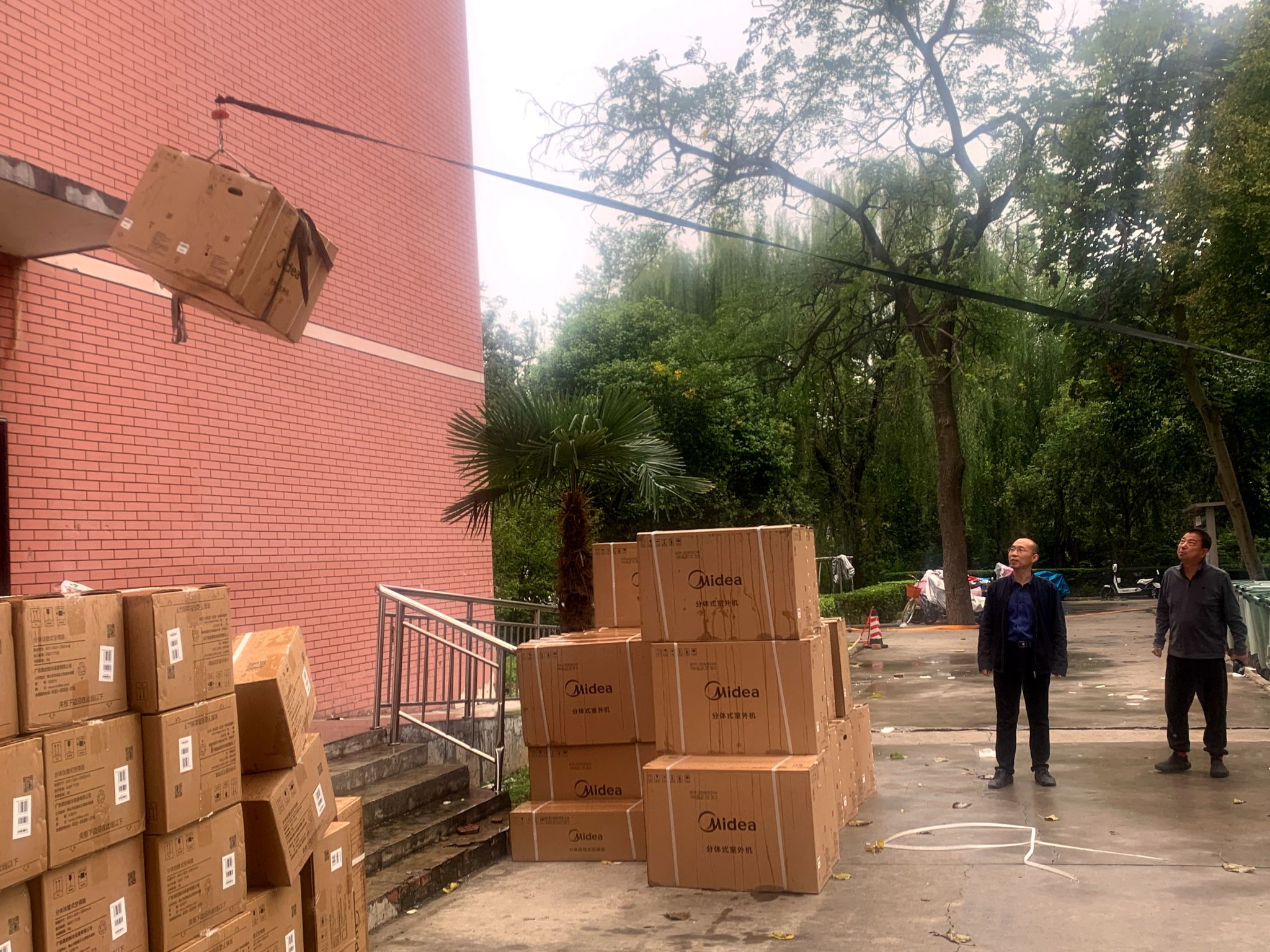 学院领导先后查看了百农精神传承馆施工现场和学生宿舍空调的安装现场,并对在国庆节期间坚守一线的后勤、保卫等工作人员表示感谢和慰问。