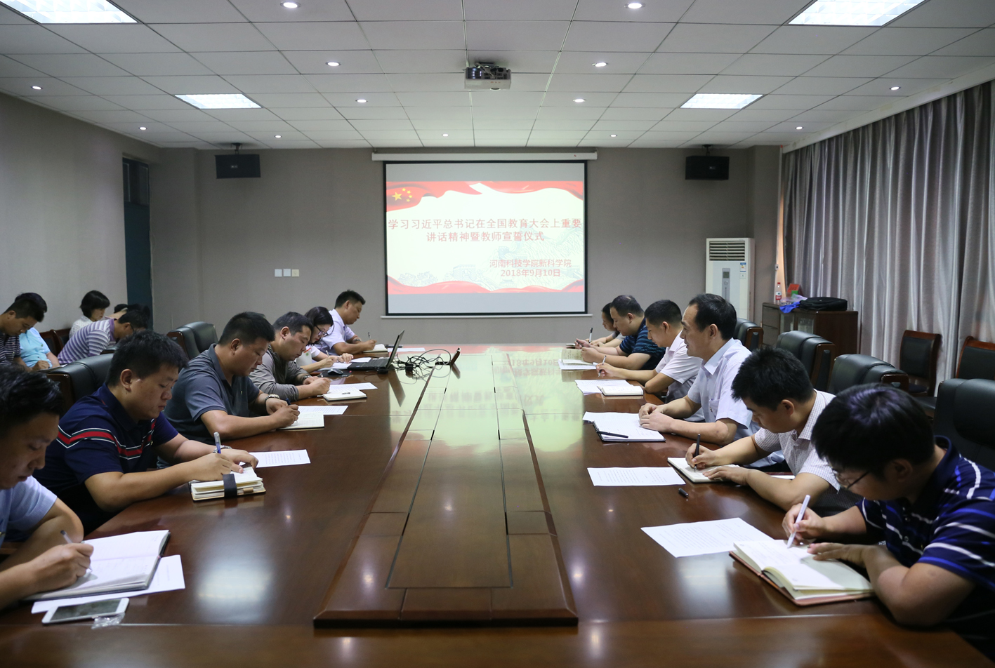 9月10日下午,我院在12号教学楼第二会议室集中学习习近平总书记在全国教育大会上的重要讲话精神。院党委书记张忠迪、各部门负责人、部分教师代表参加了学习。
