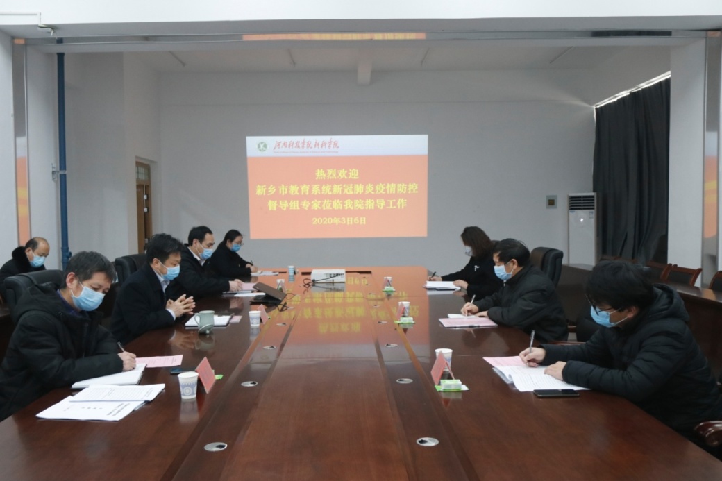 3月6日下午,新乡市教育系统疫情防控督导组组长、新乡市教育局副局长冯树正一行3人到我院新校区检查疫情防控工作。我院在行政楼208会议室举行汇报会,院长刘鸣韬、党委书记张忠迪、副院长张宝剑出席会议。疫情防控各工作组组长参加会议。会议由张忠迪书记主持。