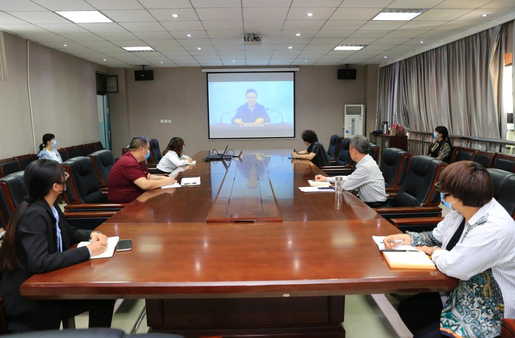 大家集体观看了省教育厅统一录制的全省高校“返校复学第一课”视频,校党委书记周志远讲话、校长李成伟讲话、校党委副书记苗双虎讲话、校本部返校复学教师和学生代表的发言等视频内容。