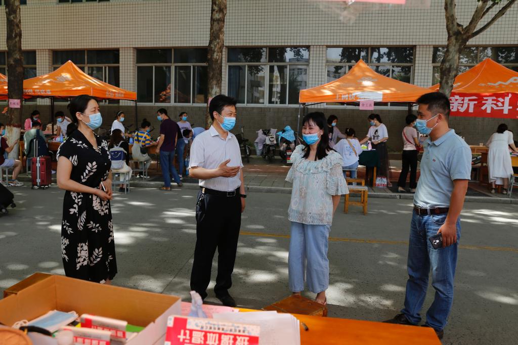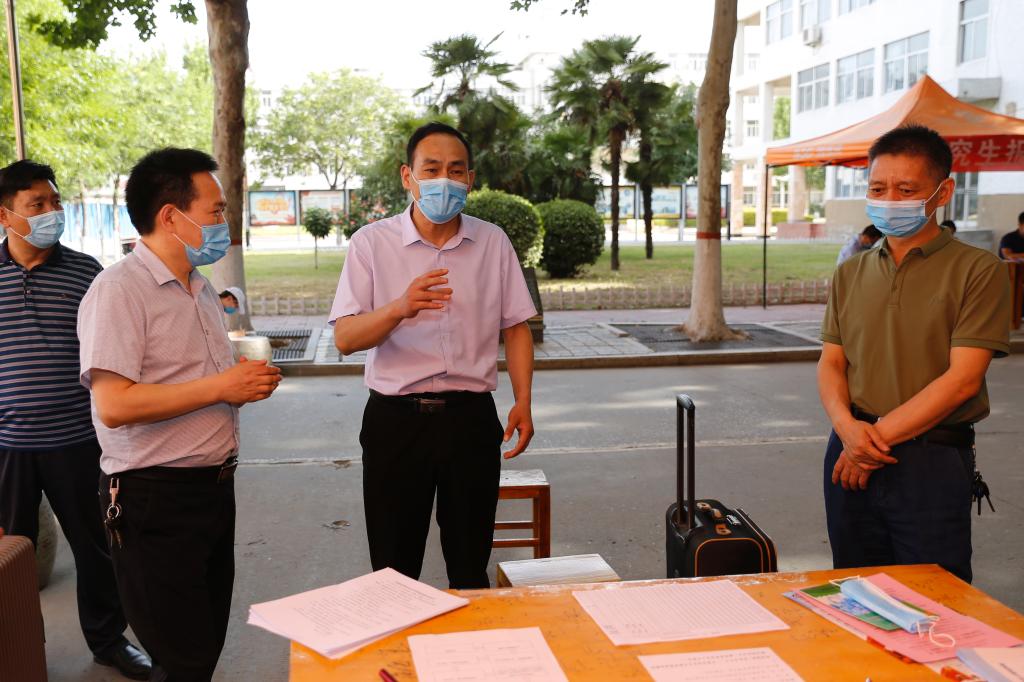 一大早,学院领导刘鸣韬、张忠迪、张宝剑、王秀金、张慧辉等来到学生报到点,实地查看毕业年级学生返校情况,检查指导学生返校工作。院领导仔细了解了第一批学生返校概况以及为学生准备的防疫物资等情况,并与已报到学生亲切交流,叮嘱大家要严格遵守疫情防控期间各项校园管理规定,在校期间做好个人防护。