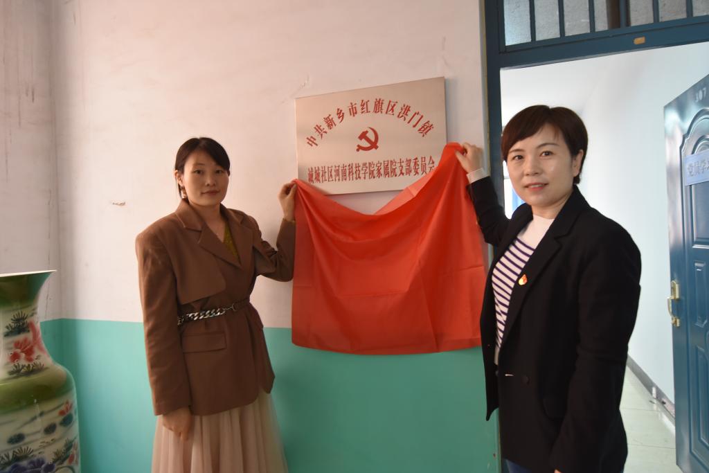 3月15日上午,我校举行洪门镇诚城社区河南科技学院家属院党支部揭牌仪式,诚城社区党委副书记艾娟、组织员赵晶晶、校党委组织部副部长陈腾、家属院党支部书记杨建设等参加揭牌仪式。