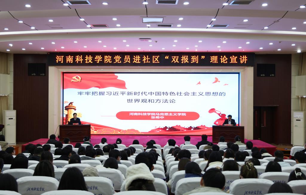 为推动学习宣传贯彻习近平新时代中国特色社会主义思想和党的二十大精神走深走实,进一步做好基层党组织和党员干部联系服务群众工作,1月4日下午,我校党委宣传部组织开展了党员进社区“双报到”理论宣讲。马克思主义学院副院长张希中老师在办公楼308报告厅为300余名师生代表作党的二十大精神专题宣讲。宣讲会由党委宣传部副部长贾普君主持。