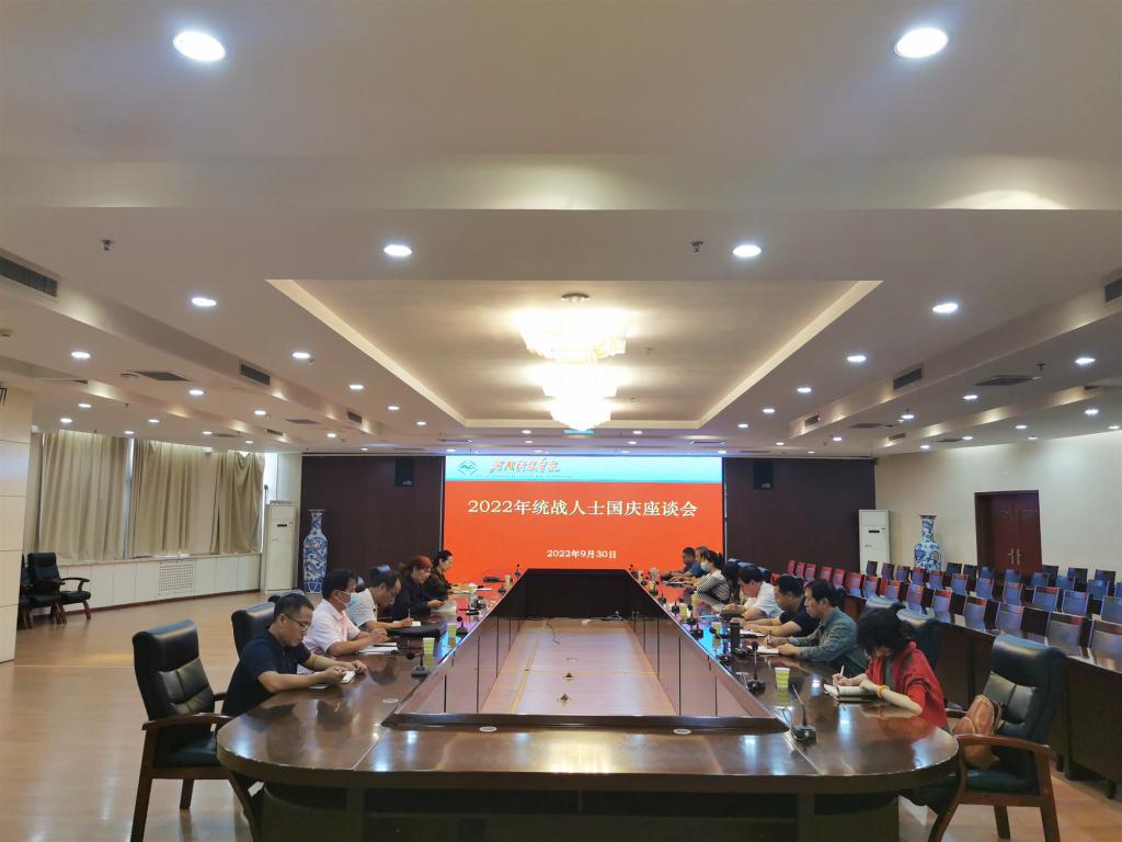 9月30日下午,我校在行政楼206会议室召开2022年统战人士国庆座谈会。我校各级政协委员、各民主党派基层组织负责人、无党派人士联谊会负责人、留学归国人员联谊会负责人参加了会议,会议由党委统战部负责人宋荷英主持。