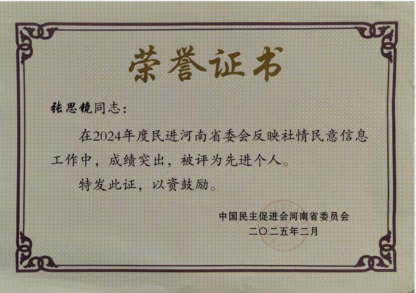 近日,中国民主促进会河南省委员会召开2025年度社情民意信息工作会议,发布《民进河南省委会关于表彰2024年度反映社情民意信息工作先进个人的决定》。我校音乐与舞蹈学院副院长、校民进主委、新乡市政协委员张思镜被授予“2024年度民进河南省委会反映社情民意信息工作先进个人”称号,他撰写的社情民意信息《关于传统戏曲艺术的生存保护与发展的建议》被河南省政协采用。