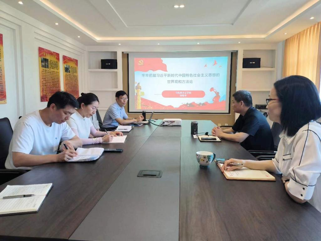 为推进学习贯彻习近平新时代中国特色社会主义思想主题教育有效开展,6月8日上午,校工会党支部邀请马克思主义学院分会副教授张希中在校工会会议室以“牢牢把握习近平新时代中国特色社会主义思想的世界观和方法论”为题,为党支部全体党员上了一堂生动精彩的党课。