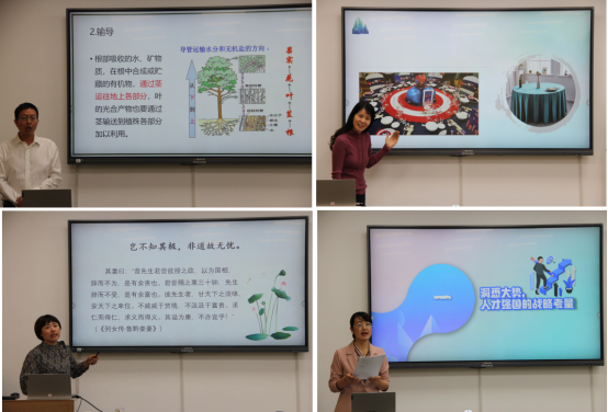 评委们从政策背景、赛制、评分标准、教学阐释、说课、教学理念贯穿、教学内容选择、教学目标、教学模式、教学方法等教学技能竞赛设计原则等进行一一阐述。他们还重点分享了自己常用的教学法,指出选手在课程思政、板书设计、教姿教态、PPT制作等方面需要注意的问题,并交流了个人经验和感想。