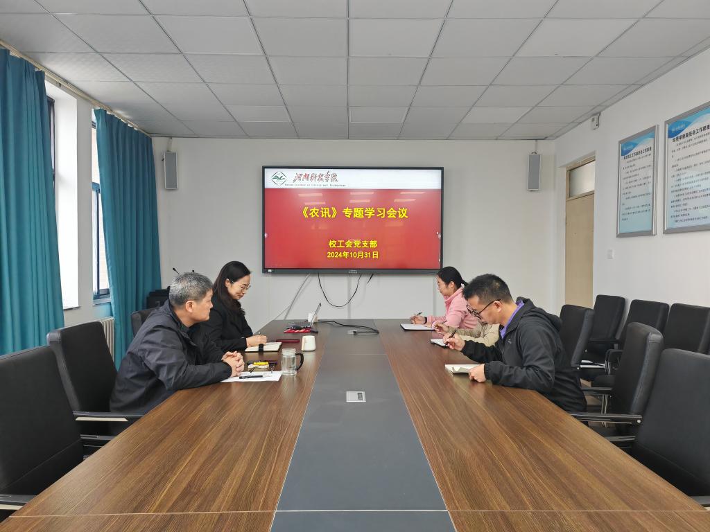 10月31日上午,校工会党支部在校工会会议室召开《农讯》专题学习会,支部全体党员参加了学习。学习会由支部书记张涛主持。